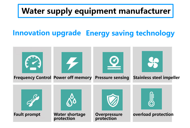 Variable frequency constant pressure water supply equipment by air pressure tank, pump and electric control system is composed of three parts, its outstanding advantage is, no need to build the tower, a small investment and land occupation, flexible layout, fast completion. In the frequency conversion constant pressure water supply equipment using automatic regulation of water and gas, automatic operation, energy saving and tap water automatically connected to the grid, the power supply is still available after the water, no need to monitor after debugging. Constant pressure water supply technology advanced, constant pressure, convenient operation, reliable operation, saving energy, high degree of automation, widely used in enterprise units, residential areas and rural production, living, office water supply. Suitable for water supply households in 5000 households, the daily water supply in 3000m3 places, the water supply height of more than 100 meters.
