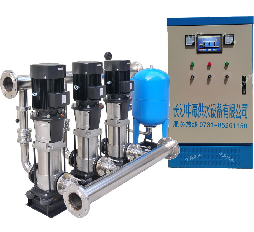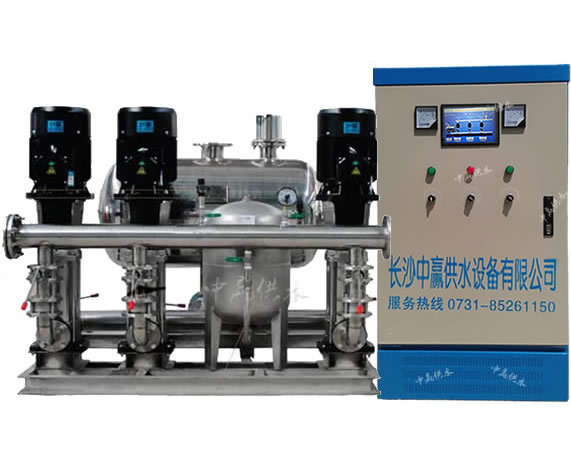長沙中贏變頻恒壓供水設(shè)備主要由水泵機(jī)組、穩(wěn)壓罐、壓力傳感器、變頻控制柜、無負(fù)壓罐、管閥附件等組成,變變頻恒壓供