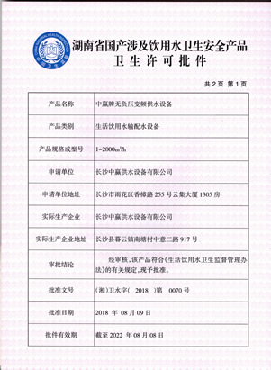 • 無負壓變頻供水衛(wèi)生許可證2